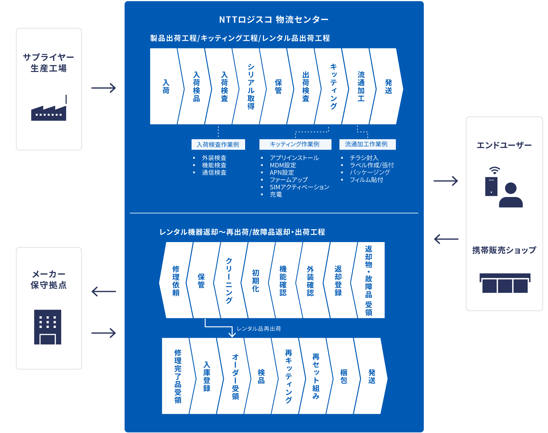 サブスクリプション型のレンタル機器については返却回収から検査・初期化・リファビッシュサービス、故障品の修理手配・再出荷までを